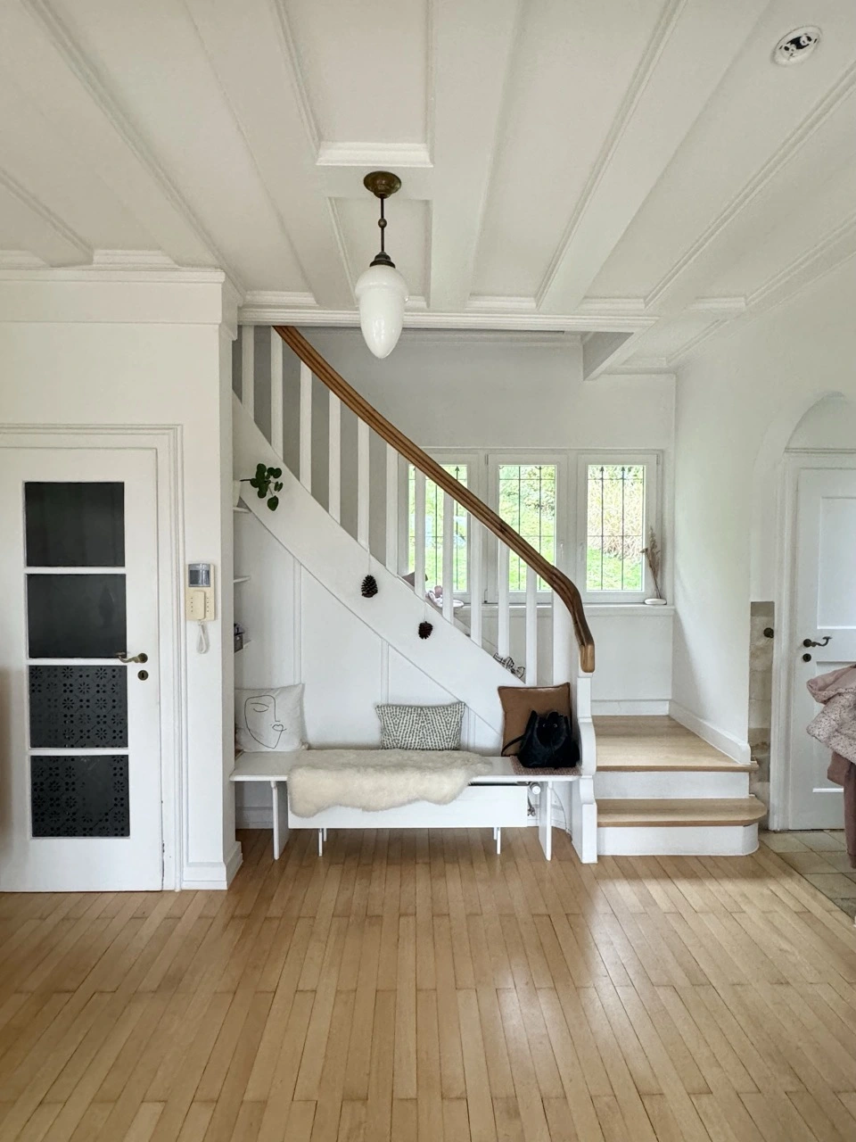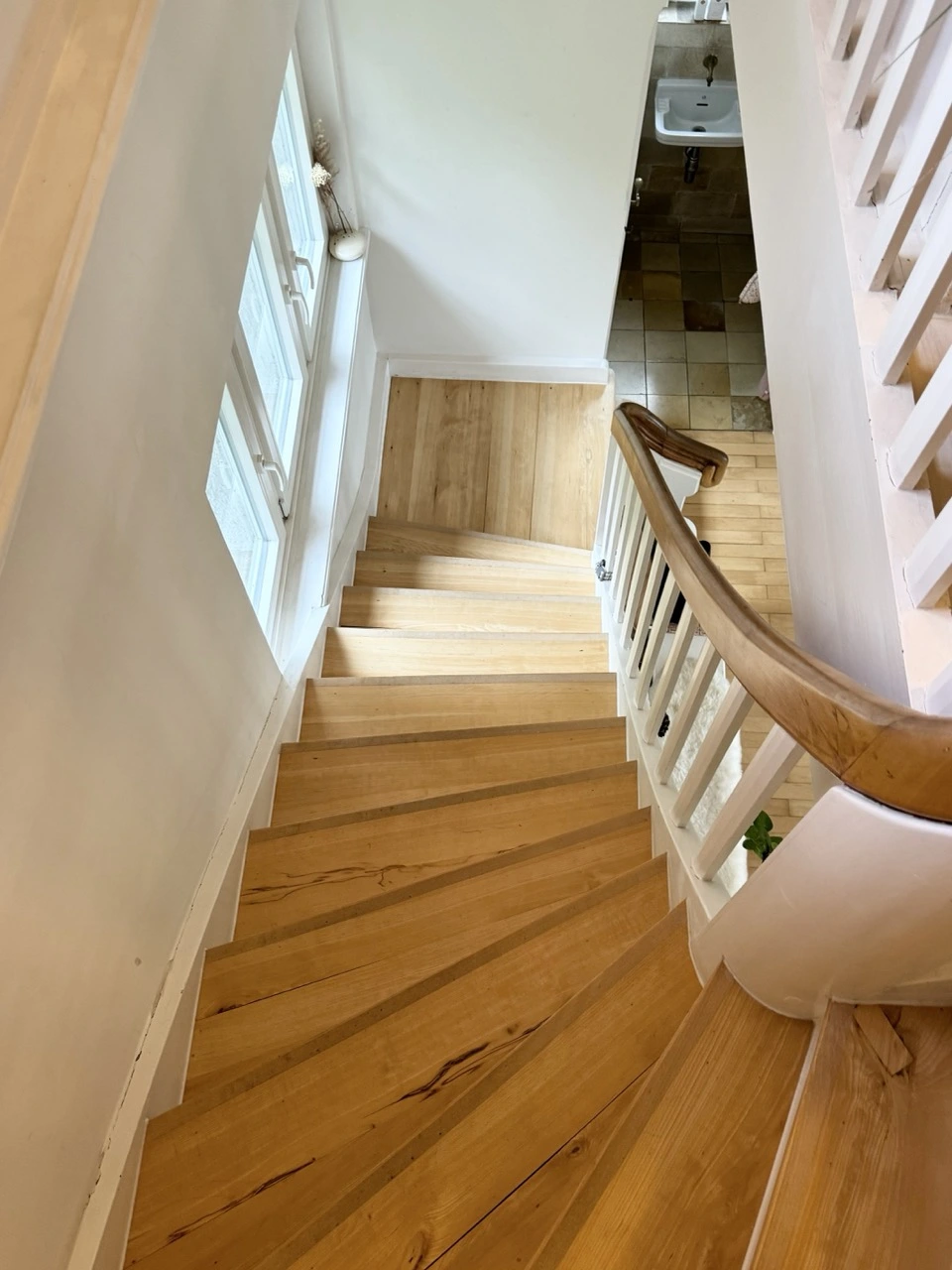 • Ausstattungsdetails: Kaminofen im Erdgeschoss, Einbauküche mit freistehendem Küchenblock, historische Beschläge, Holzböden, moderne Bäder (mit Badewanne), viele Einbauschränke und Nischen
