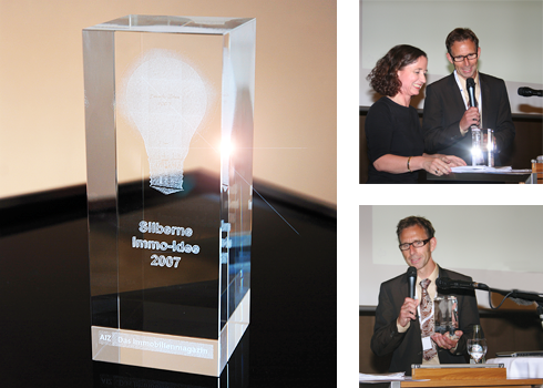 Bundesweite Auszeichnung für kreatives Marketing vom Immobilienverband Deutschland (IVD). „Mit der Idee, ein nostalgisches London-Taxi werbewirksam in das Unternehmen einzubinden, wird die Unternehmensidentität transportiert, Sympathien geschaffen und der Einstieg in den Kundenkontakt erleichtert“.